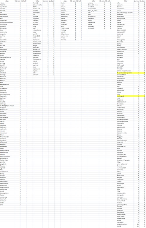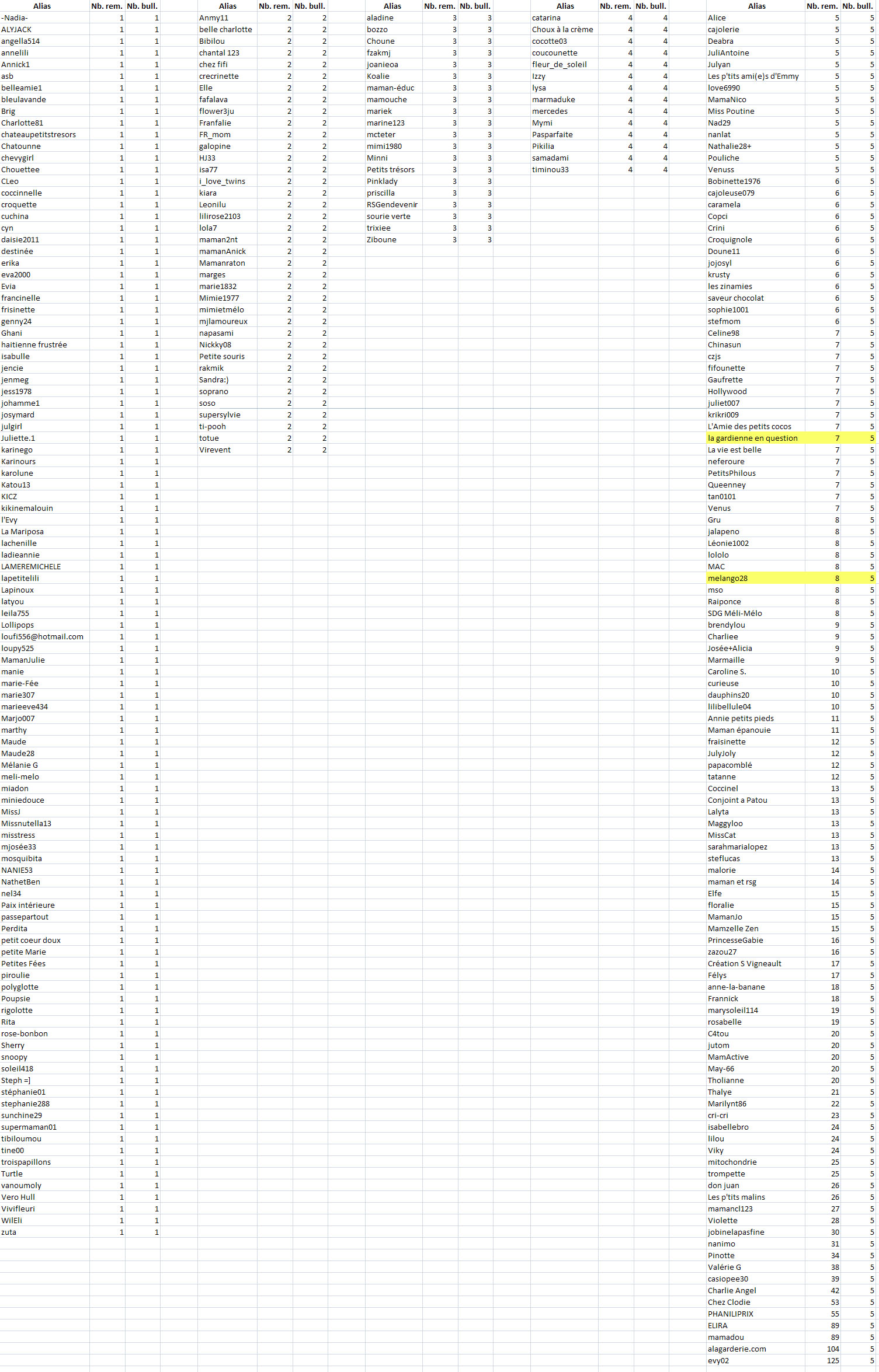 Le détail des bulletins de participation attribués à chaque utilisateur est donné dans l'image ci-dessous.
