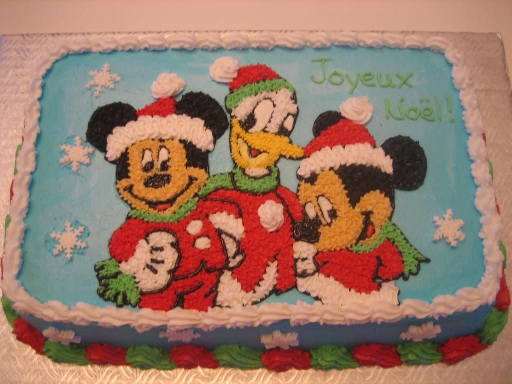 Moi pour Noël, je vais faire un dessin de Mickey, minnie et Donald de Noël en crème au beurre pour ma garderie..