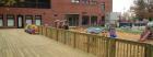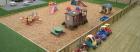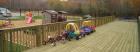 Très grande cour, trois fois plus grande que les demandes gouvernementales. Gazon synthétique. Salle polyvalente à l'intérieur pour activités motrices en cas de mauvais temps. Grande salle moteur style gymnase.